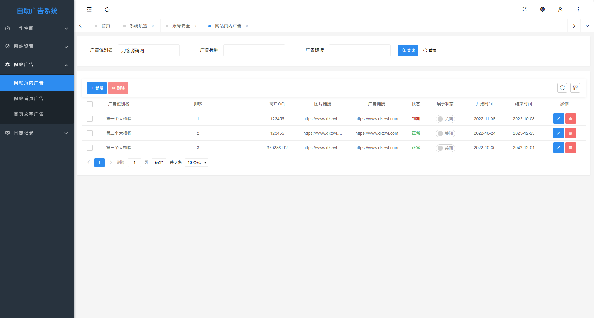 网站自助广告投放系统源码 全自动无人化出售网站广告位 站长必备
