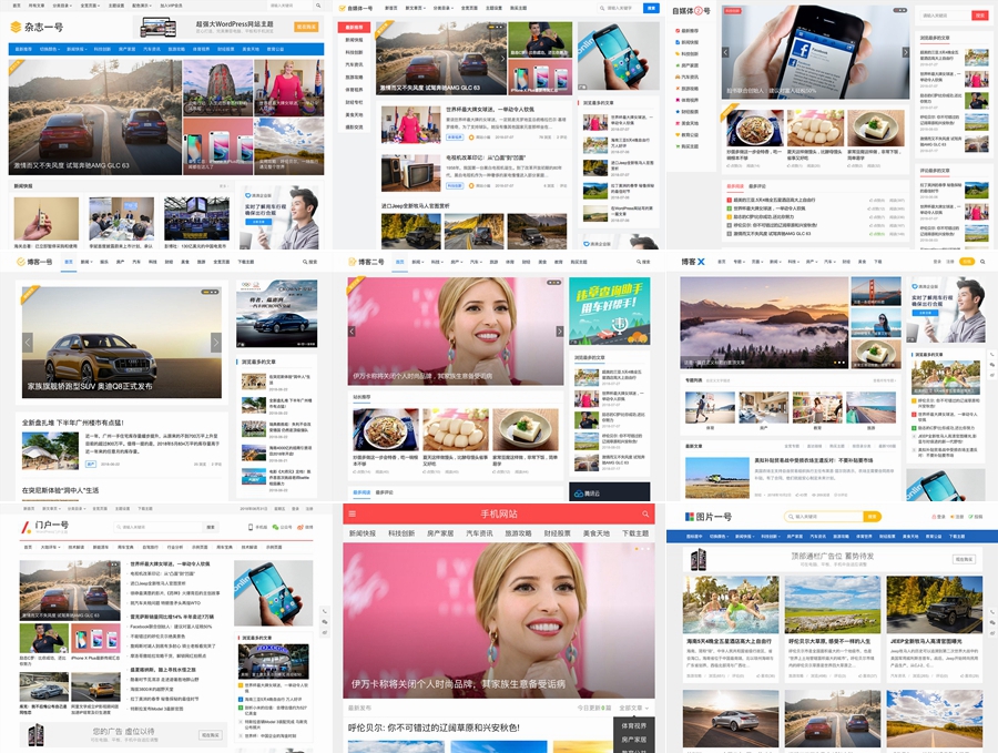 主题巴巴WordPress主题合辑打包下载,包含博客一号、博客二号、博客X、门户一号、门户手机版、图片一号、杂志一号、自媒体一号、自媒体二号和主题巴巴SEO插件。